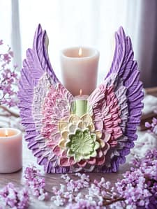 Diese zarten Engel-Flügel laden dich ein, deine Kreativität fliegen zu lassen. Mit liebevoll gearbeiteten Federn, einer goldenen Blüte im Zentrum und einer harmonischen Form sind sie mehr als nur ein DIY-Projekt – sie sind ein Ausdruck deiner inneren Welt.