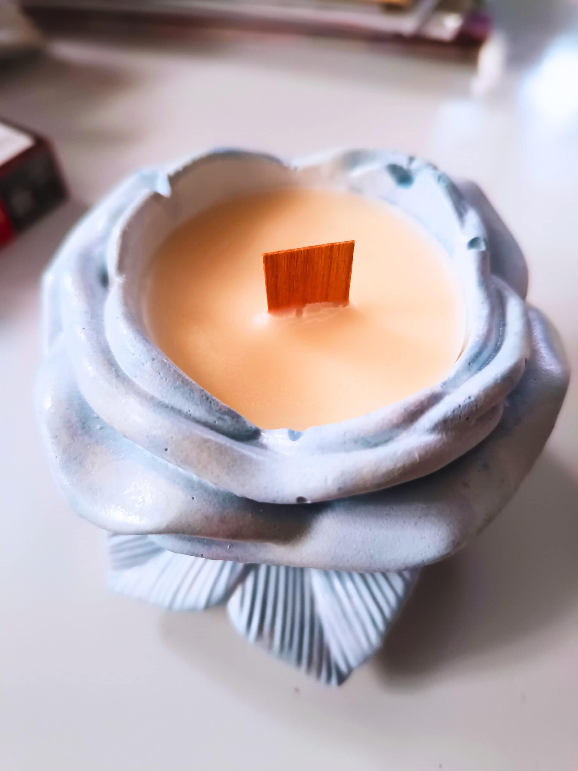 Die Blätter werden zart in Hellgrün akzentuiert und jede Kerze wird in deiner gewünschten Vintage‑Farbe gefertigt – zart, pudrig oder klassisch – ganz nach deinem Stil. 👉 ( Siehe Foto Rosa Rose mit zarten grünen Blätter – KEIN HOLZDOCHTT! )