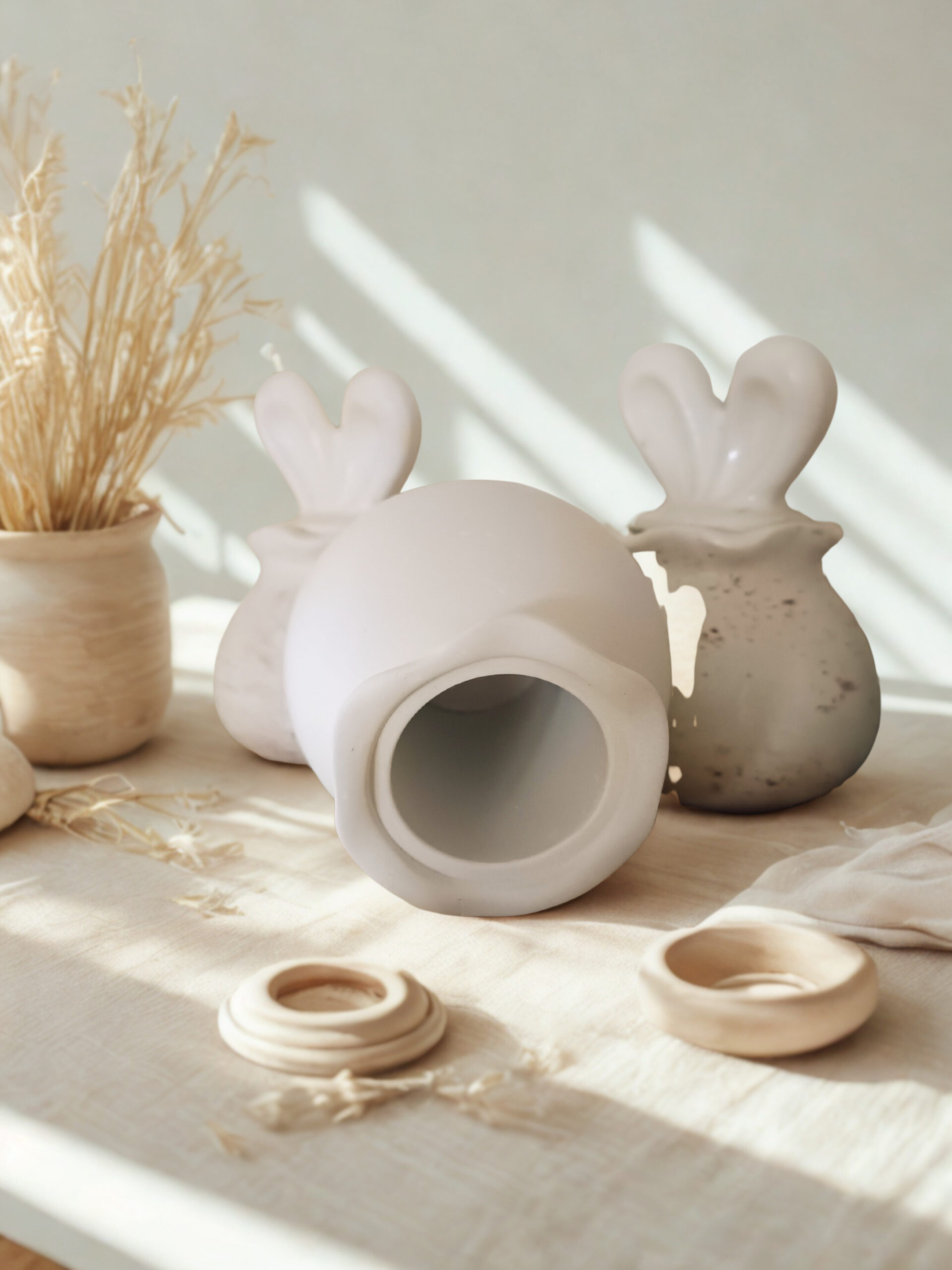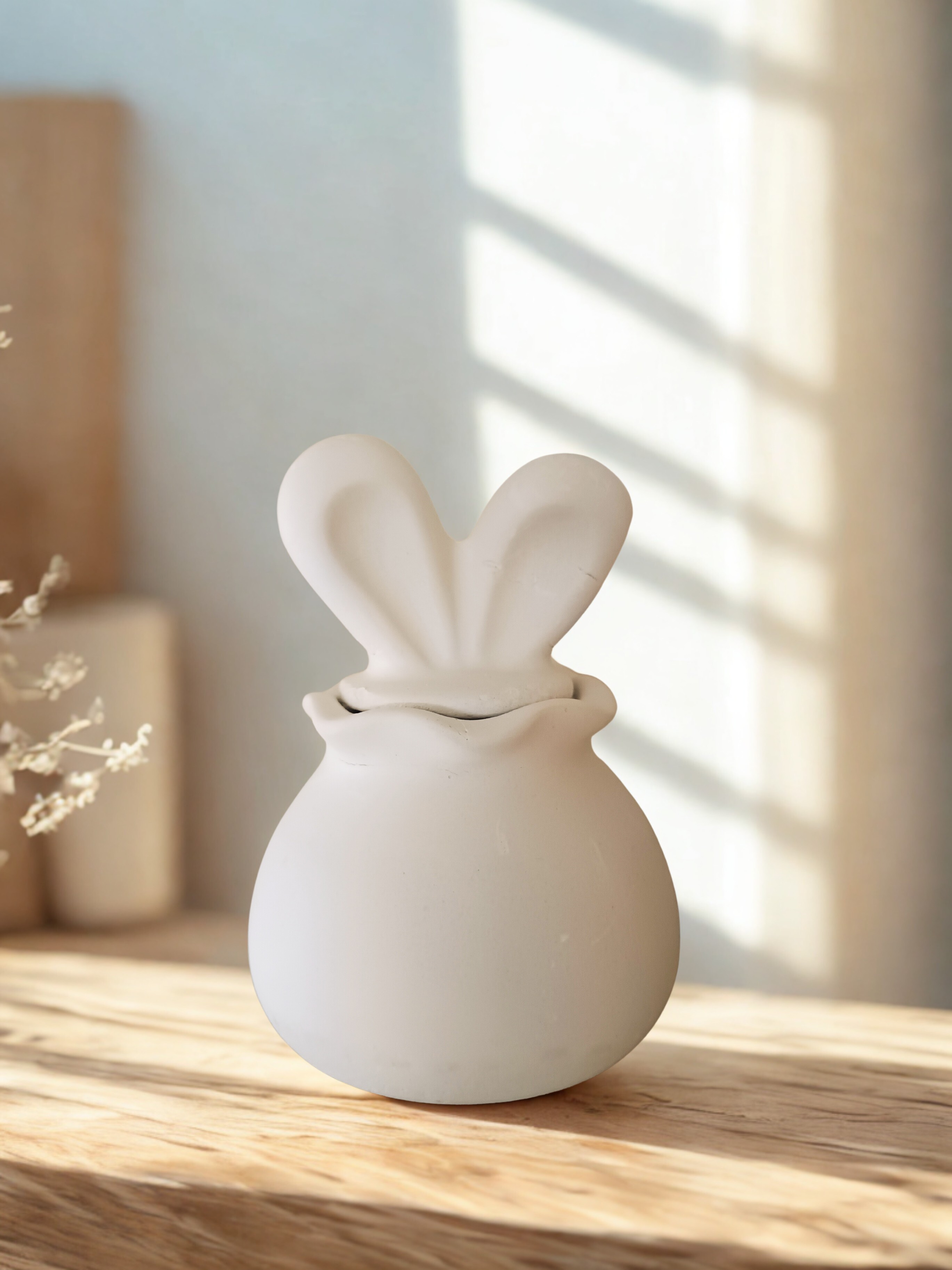 Diese liebevoll handgefertigte Hasendose aus hochwertigem Gips ist ein kleines Highlight für jede Jahreszeit – und besonders charmant zu Ostern. Die glatte Oberfläche, die klare Form und der Deckel in Form süßer Hasenohren machen sie zu einem dekorativen Lieblingsstück, das sofort ein Lächeln zaubert.