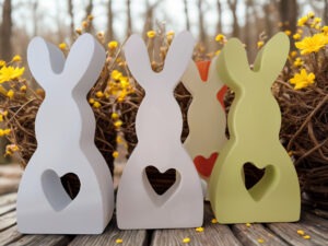 Einzelne Osterhasen aus hochwertigem Gips, liebevoll von Hand gegossen und sorgfältig nachbearbeitet. Jeder Hase ist etwa 12,5 cm groß und kann in jeder gewünschten Farbe gestaltet werden – von klassischem Weiß über Pastelltöne bis hin zu kräftigen Frühlingsfarben.