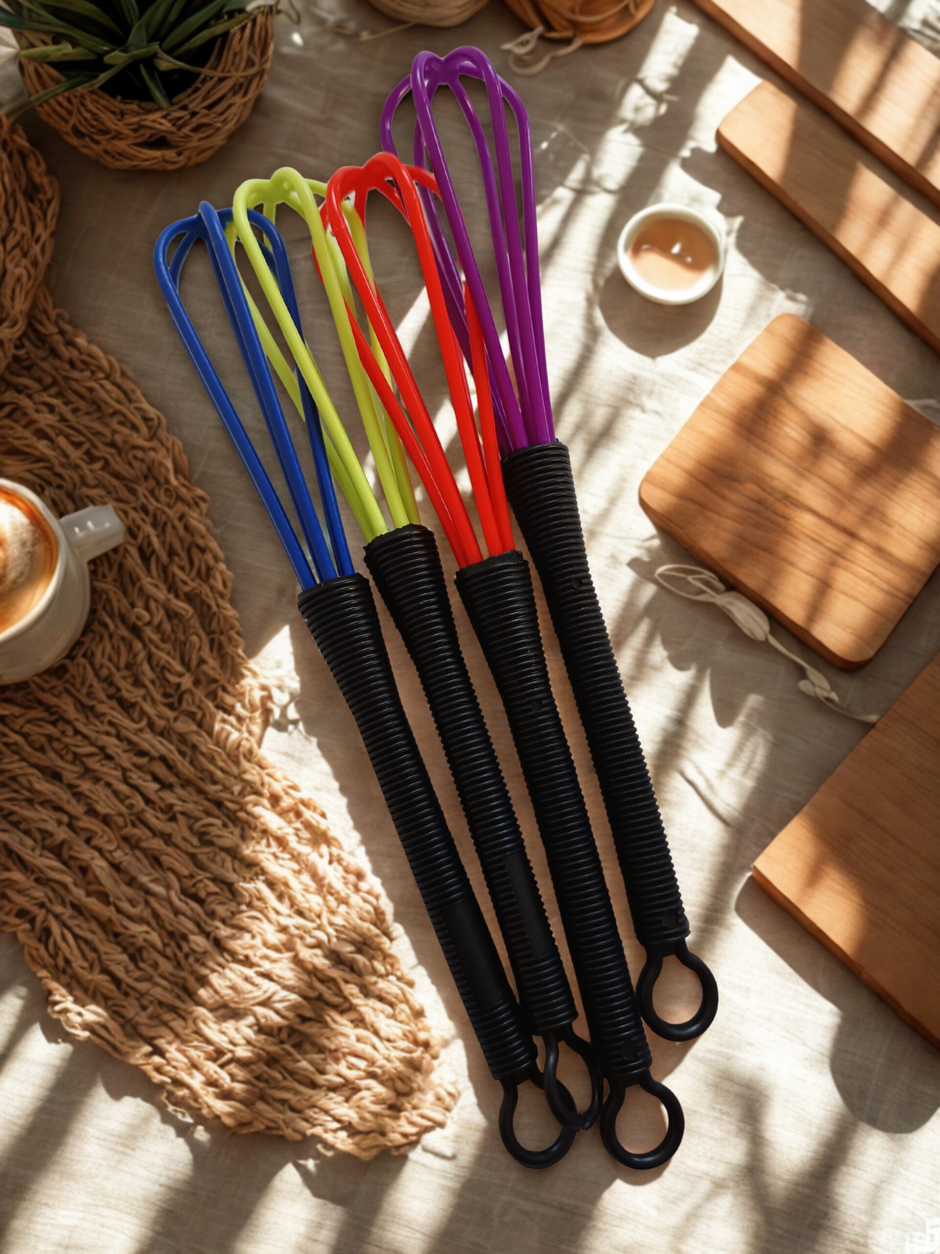 Der Besen besteht aus stabilem Kunststoff, ist leicht zu reinigen und damit perfekt für den täglichen Einsatz geeignet. Die Mini‑Rührbesen kommen in verschiedenen Farben – eine Farbauswahl ist nicht möglich.