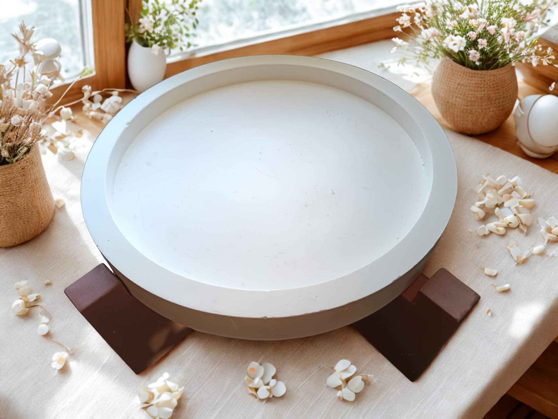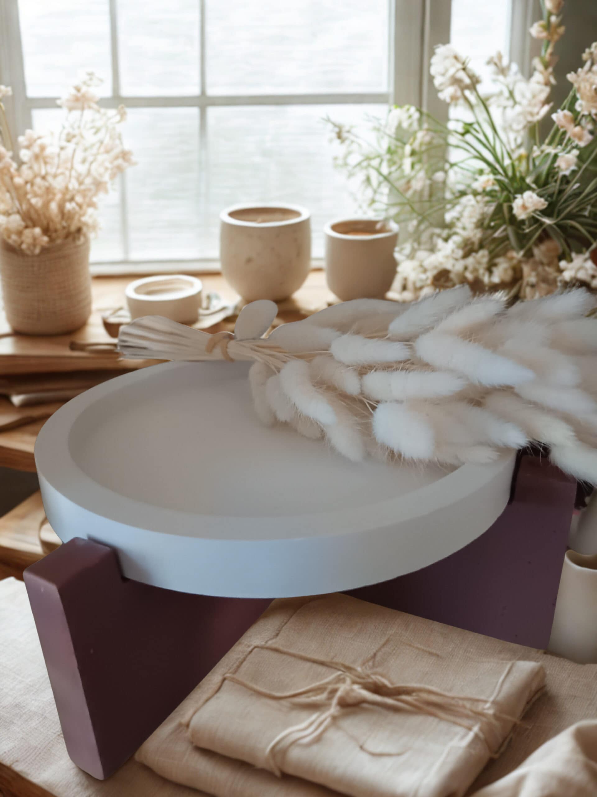 Dieses 3‑teilige Stand‑Regal aus hochwertigem, handgefertigtem Gips ist die ideale Bühne für Kerzen, Vasen, saisonale Arrangements oder kleine Lieblingsstücke. Mit einer Höhe von ca. 9 cm und einem Durchmesser von ca. 24 cm bietet es eine stabile, elegante Präsentationsfläche, die sich harmonisch in jedes Wohnambiente einfügt.