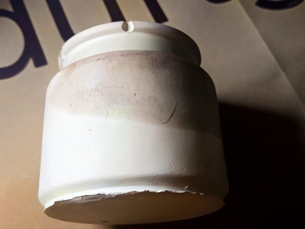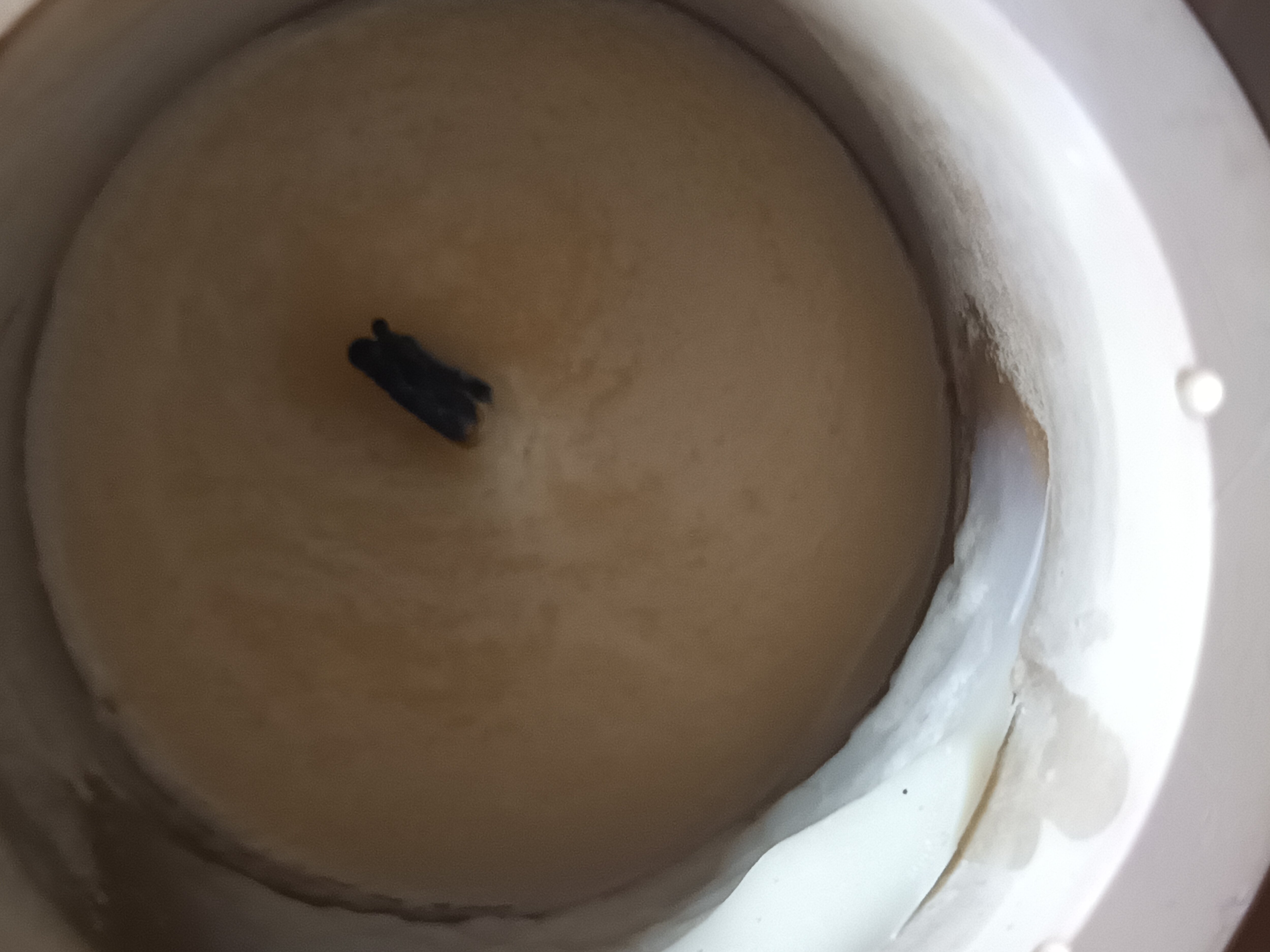 Nach dem vollständigen Aushärten der Kerzen folgte der spannende Moment – das Anzünden. Schon nach kurzer Zeit zeigte sich jedoch ein unerwarteter Effekt: Der Wachs wurde an der Außenseite der Töpfchen feucht. Schnell wurde klar, dass der Fehler in der Abdichtung lag. Die Innenseite der Gipstöpfchen war unbehandelt geblieben, wodurch das flüssige Wachs in die poröse Struktur des Gipses eindringen konnte. Das führte dazu, dass Feuchtigkeit nach außen trat und die Oberfläche leicht durchtränkte.